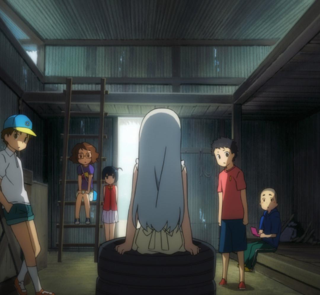 童年时期的一个盛夏,女孩子面码(茅野爱衣 配音)死于意外。这件突如其来的死亡事件,深深刺痛了她的五个儿时玩伴——仁太、安鸣、雪集、鹤见子以及波波。六人组成的秘密基地“超和平Busters”就此解散,活